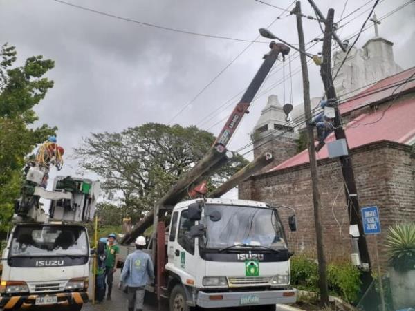 超级台风“埃盖”过后,菲律宾北部电力公司的输电线工人已经部署到位,他们正在加班加点地恢复该省的电力供应。(图片由Inec提供)