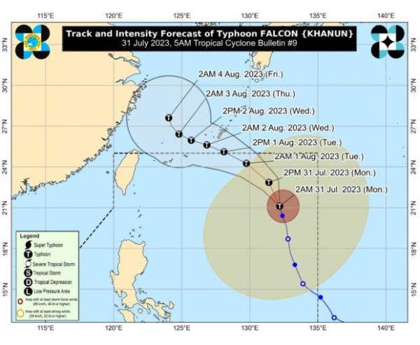 截至上午5点,台风中心最后位于吕宋岛极北以东1070公里处。