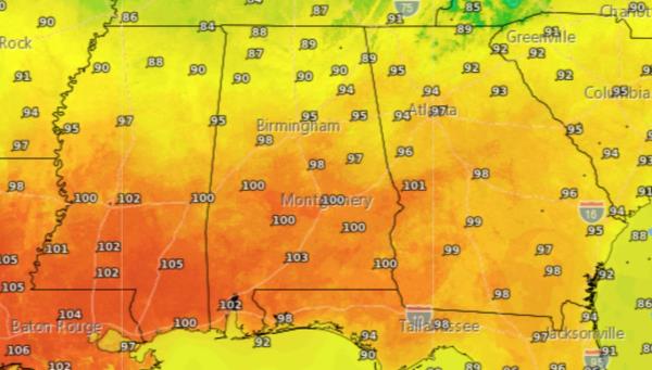 周六下午,莫比尔气温达到106华氏度。根据美国国家气象局的数据,这不仅是8月26日的记录,也是该市有记录以来的最高温度: