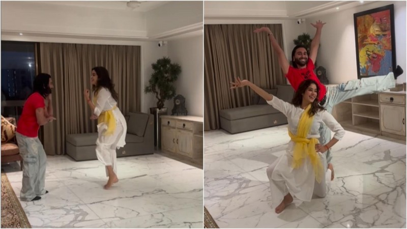 Orry分享了一段视频,视频中他和他最亲密的朋友Janhvi Kapoor一起随着Bajirao Mastani的歌曲Pinga跳舞。作为一名训练有素的古典舞蹈演员,这位女演员引领潮流,重现了标志性的舞步。哈利跟着她,用他独特的方式抚摸着它。Janhvi穿着一件白色的kurta睡衣和一件黄色的长袍,而他穿着一件红色的t恤和宽松的牛仔裤。