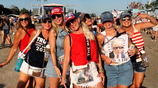 马特·盖兹,活生生的,做宣传的人。一个老兵被Big & Rich带到台上,骄傲地宣布“F——乔·拜登”,然后在台上的吧台上喝一两杯。摇滚小子(Kid Rock)诚恳地呼吁大家尊重国旗,在他的演出开始时,他真的让钢管舞者在国旗上碾压。